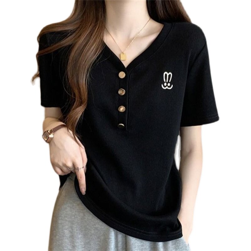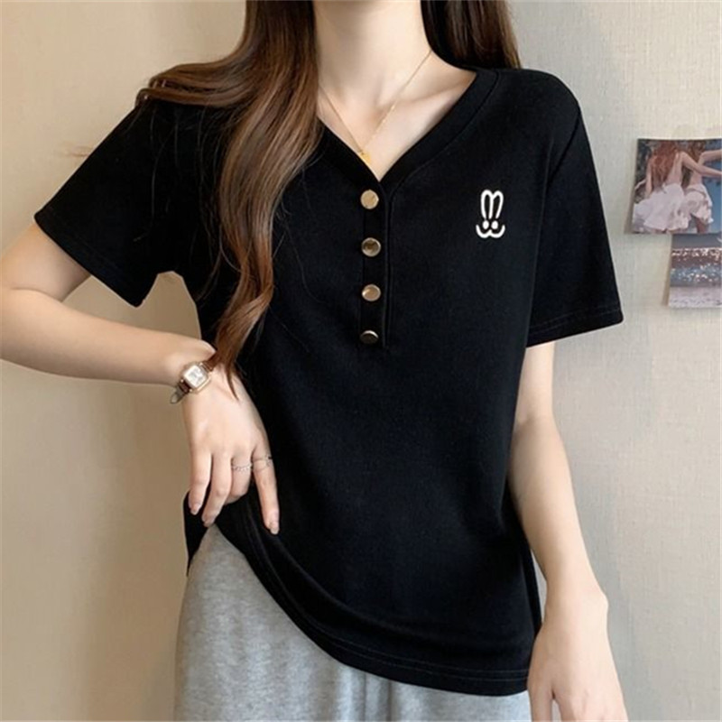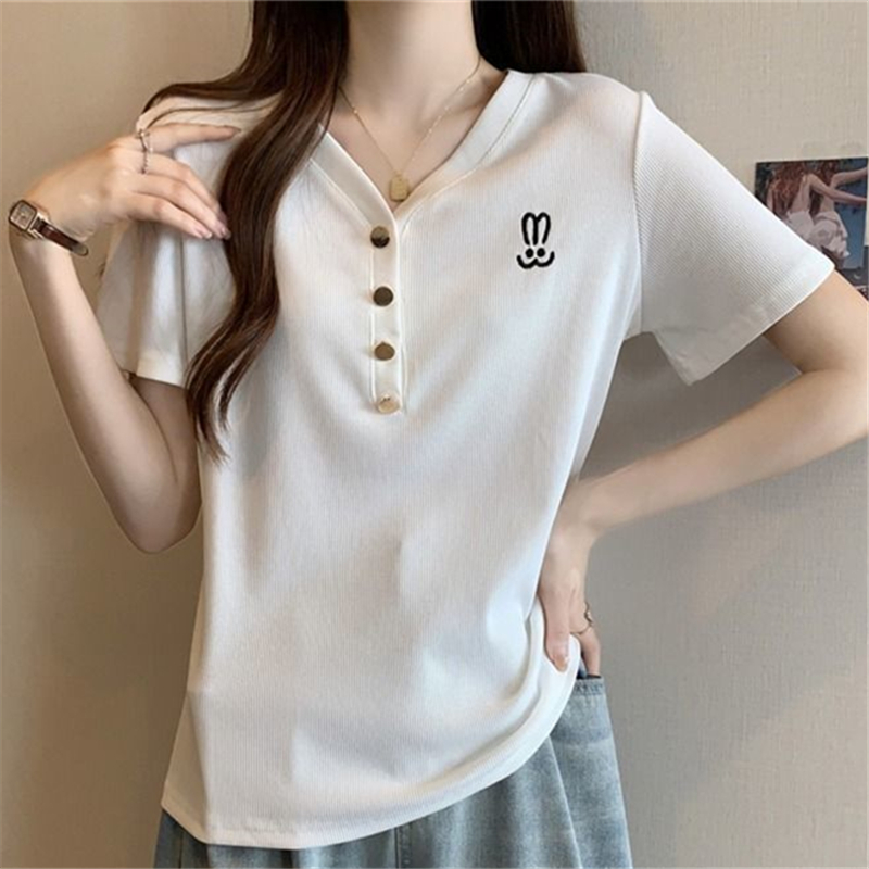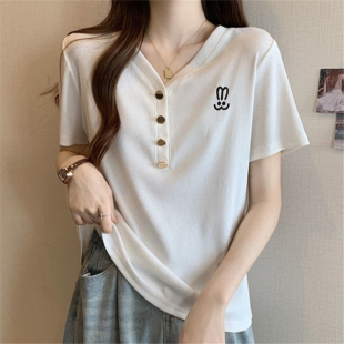 上衣女 螺纹刺绣短袖 清仓捡漏专柜撤回特大码 胖mm300斤T恤女时尚