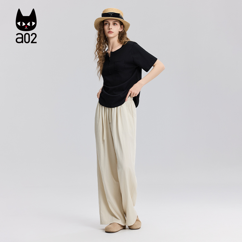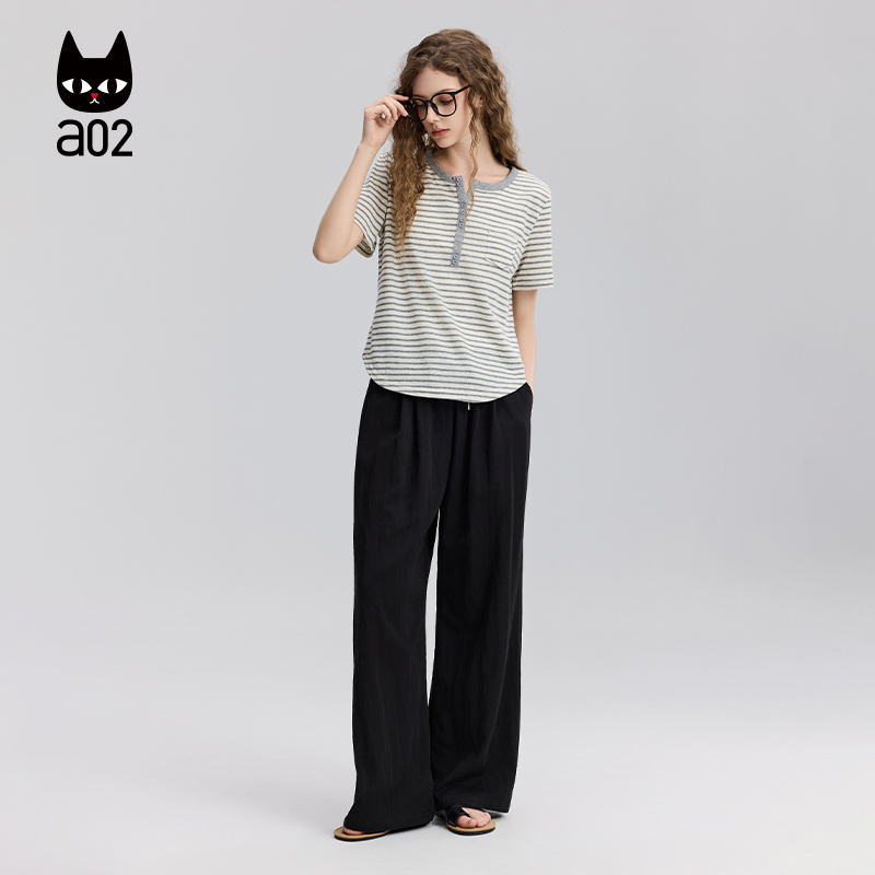胖妹妹显瘦垂感休闲裤 格雷系黑灰撞色阔腿慵懒风格 大码 女秋季 子裤