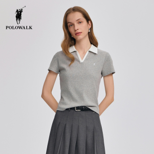 短袖 潮流女装 V领T恤夏季 撞色收腰打底衫 上衣 新品 POLOWALK女式