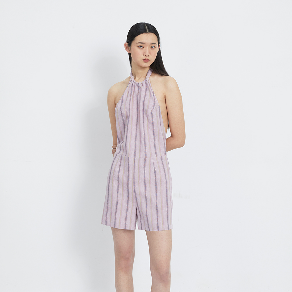 孤品特价 暗粉色银丝织亚麻连体短裤
