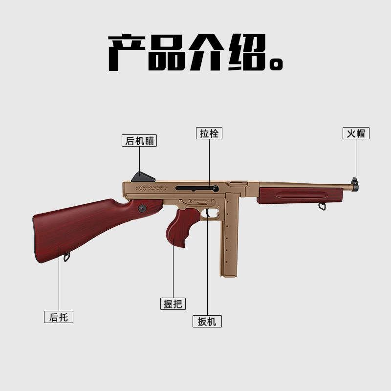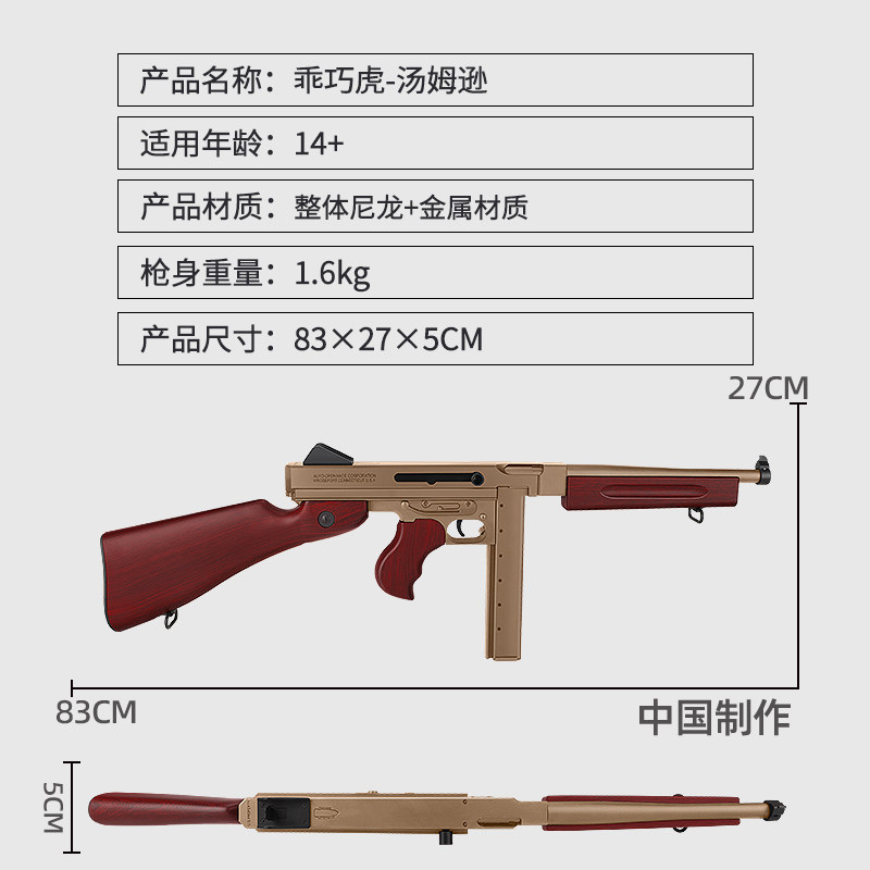 乖巧虎汤姆逊金齿m1冲锋枪cs金属电动连发回膛成人发射器玩具模型