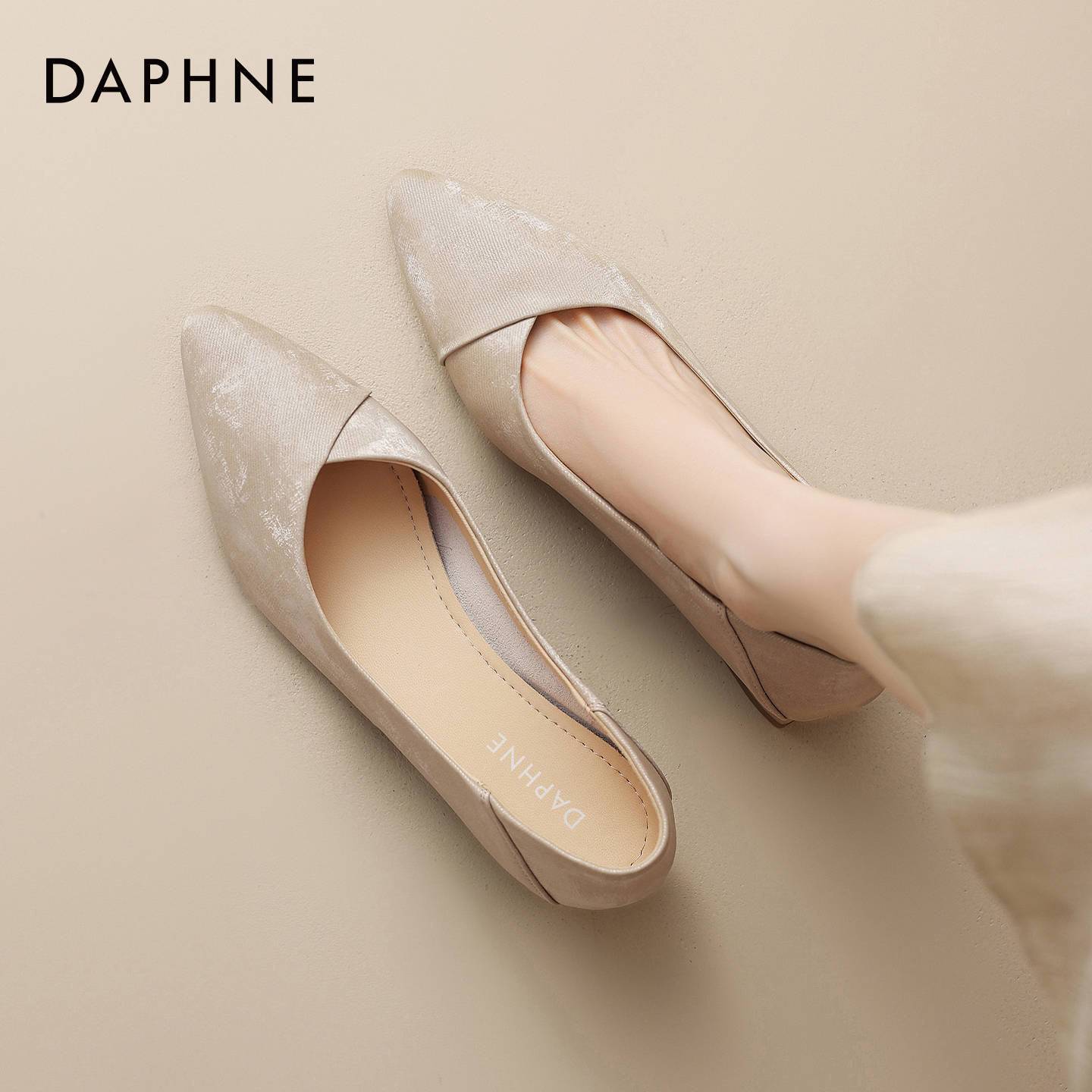 女中跟尖头女鞋 新中式 2025春季 粗跟浅口小皮鞋 新款 达芙妮真皮单鞋