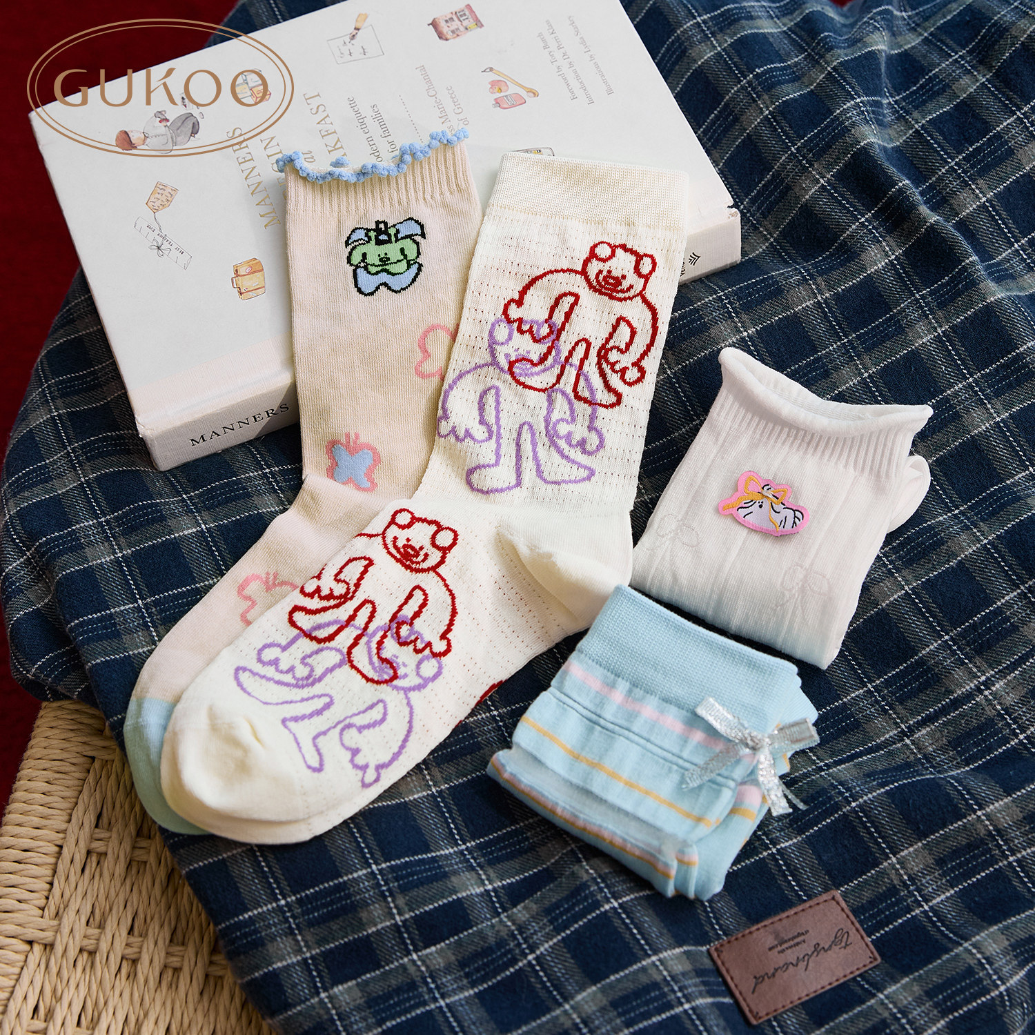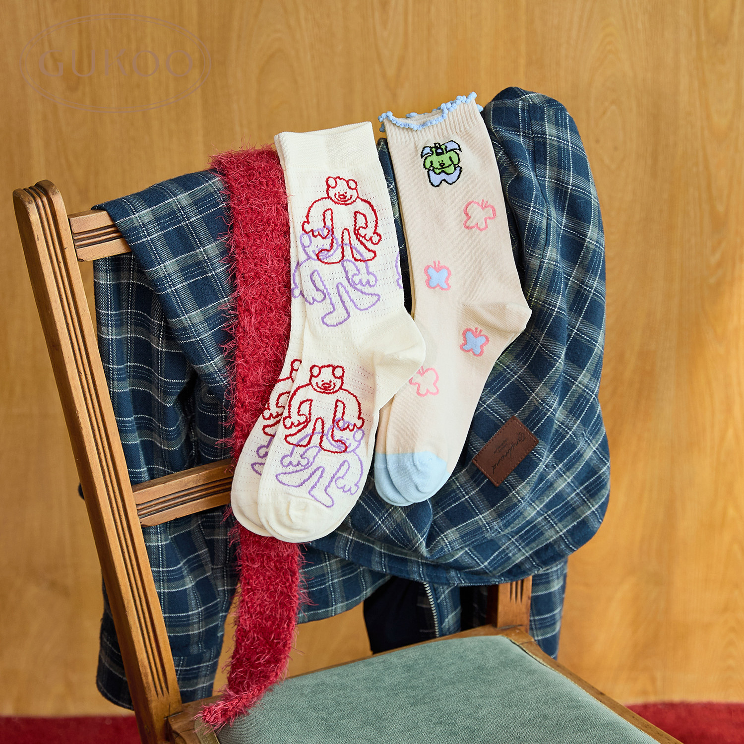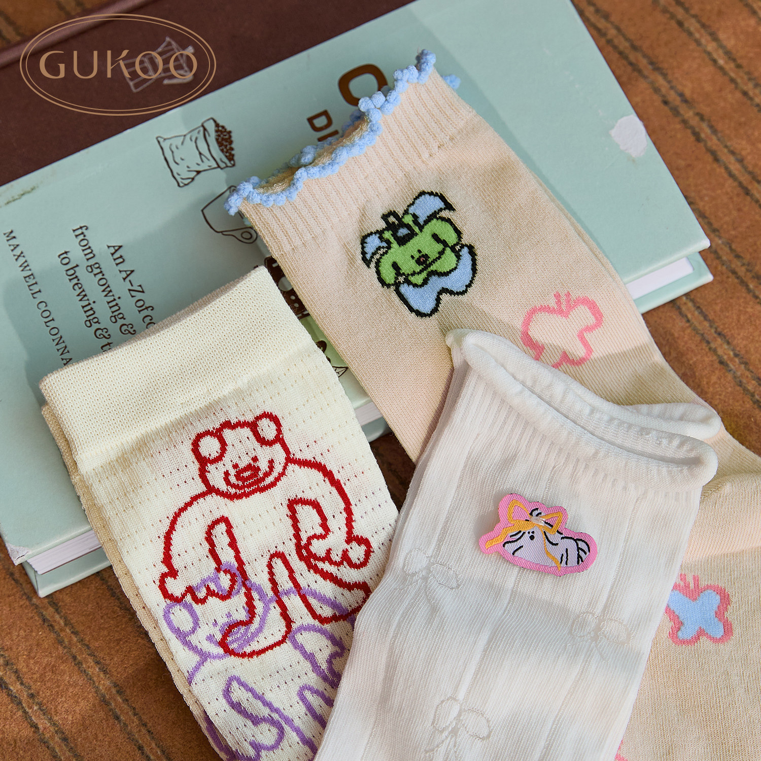 Gukoo 女士百搭中筒袜 果壳中筒袜女春夏可爱卡通袜子新款