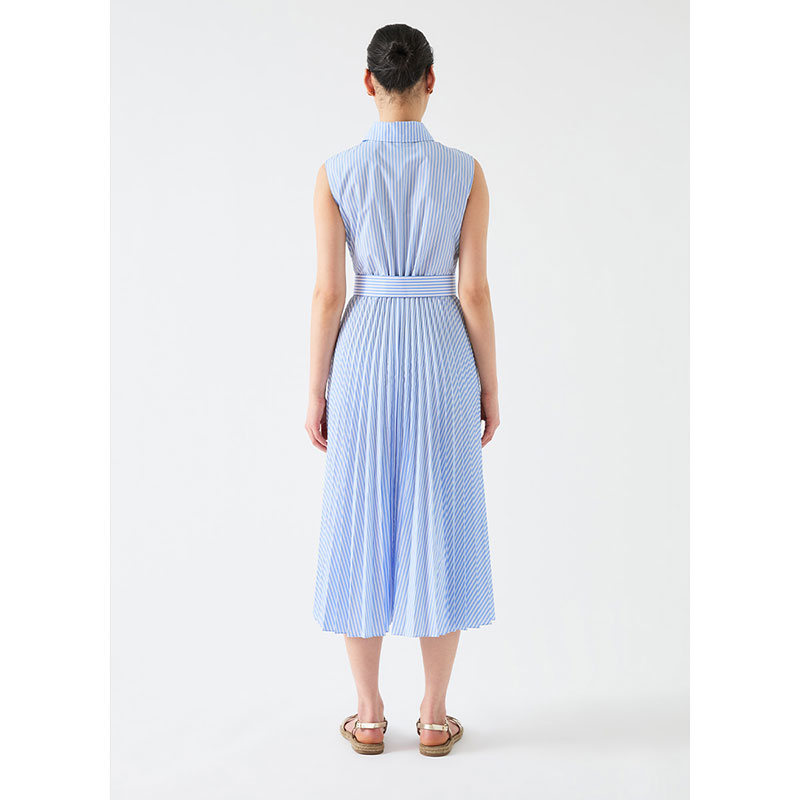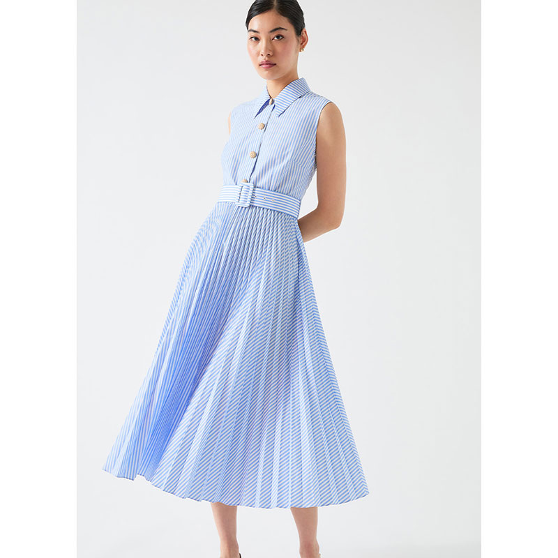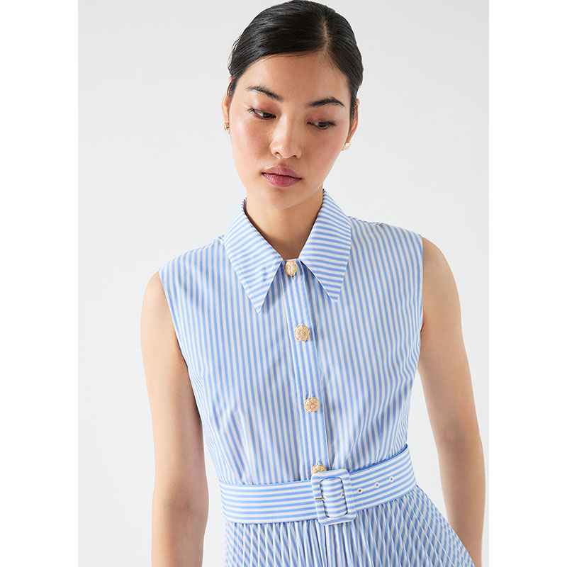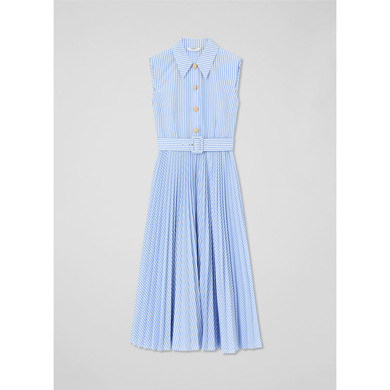 条纹无袖 新款 系腰拼接百褶裙 连衣裙2025年夏季 lkbennett蓝色衬衫