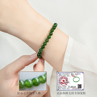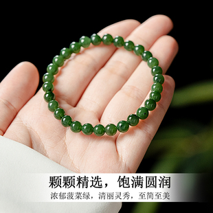 天然和田碧玉手串俄料原矿玉石碧玉菠菜绿素圈晴水串珠手链女真品
