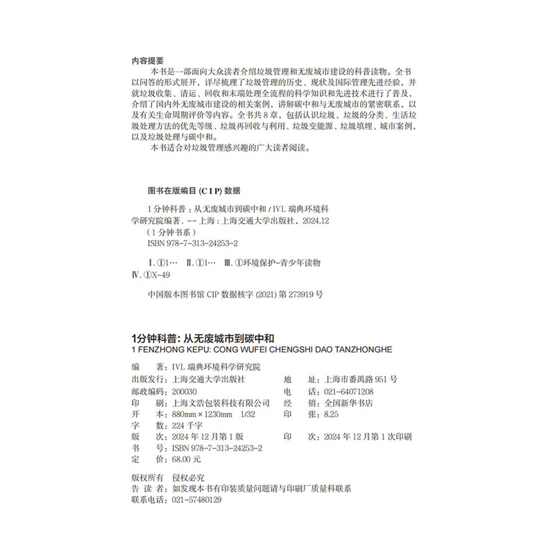 社凤凰新华书店旗舰店 治理上海交通大学出版 1分钟科普 从无废城市到碳中和IVL瑞典环境科学研究院环境保护