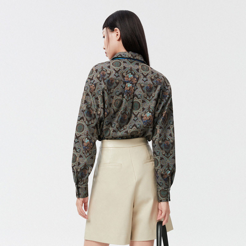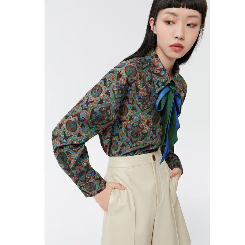 正品 联名满印衬衫 剪牌清仓 女式 L410 休闲印花款 鸟撤柜女装