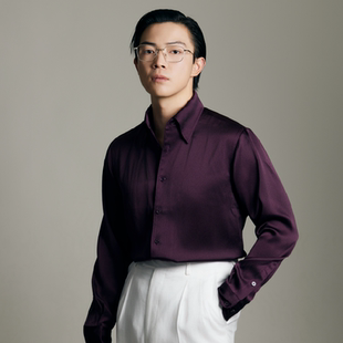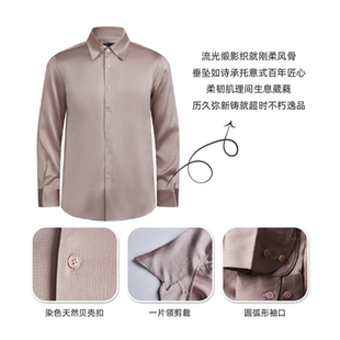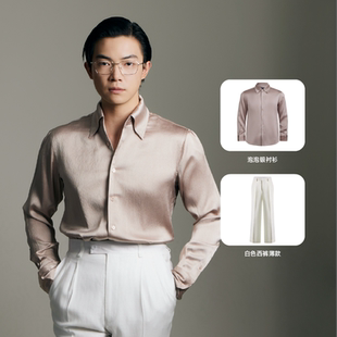 衬衫 一片领抗皱透气长袖 平圆方中夏季 男休闲衬衣 泡泡肌理缎