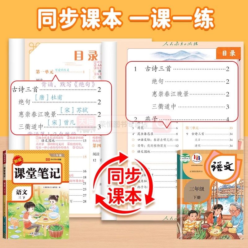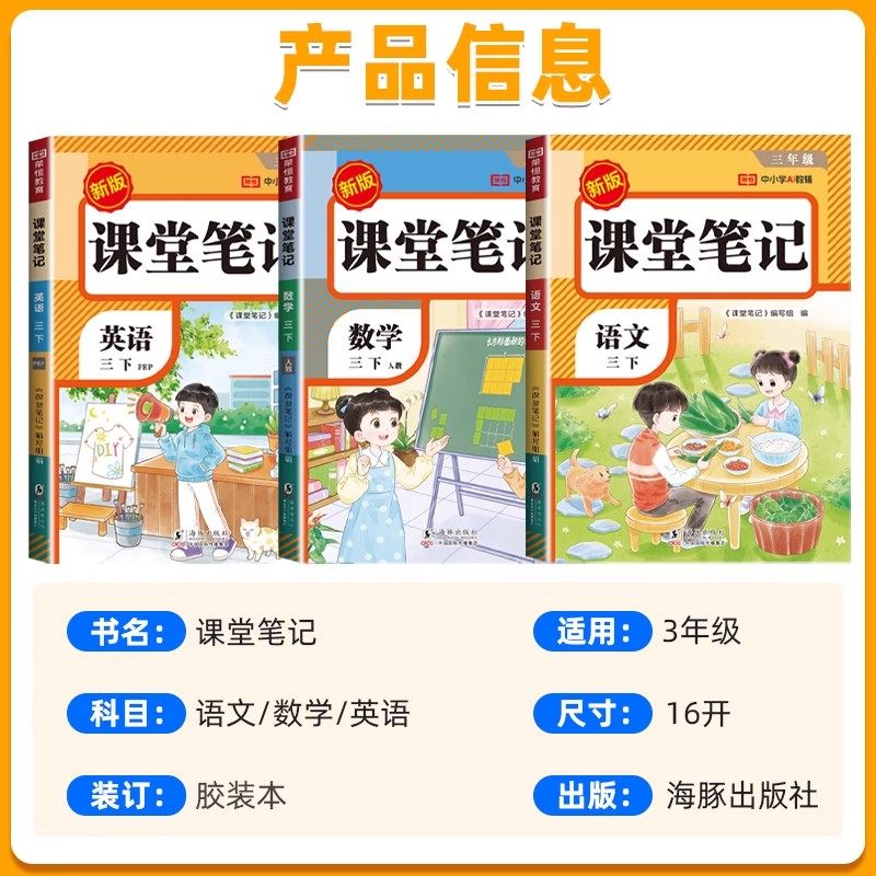 语文数学英语预习同步课本辅导资料三下教材笔记解读全解小学生3年级下册状元 三年级下册课堂笔记人教版 学霸随堂笔记 2026新版