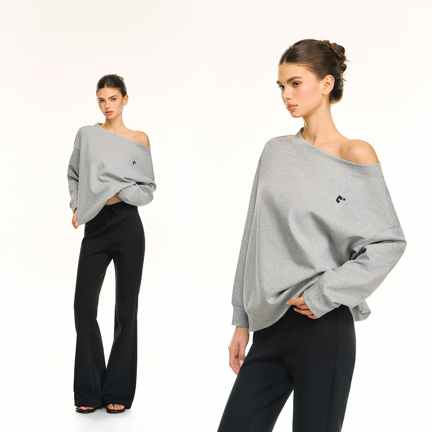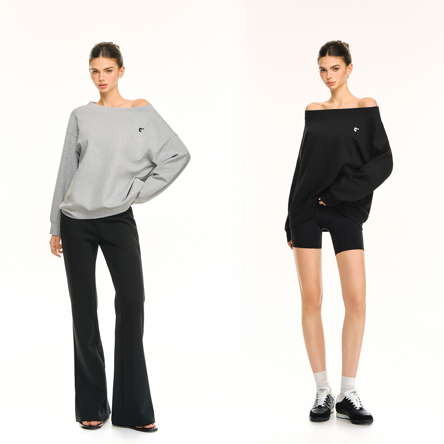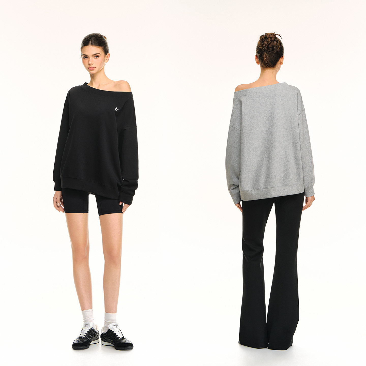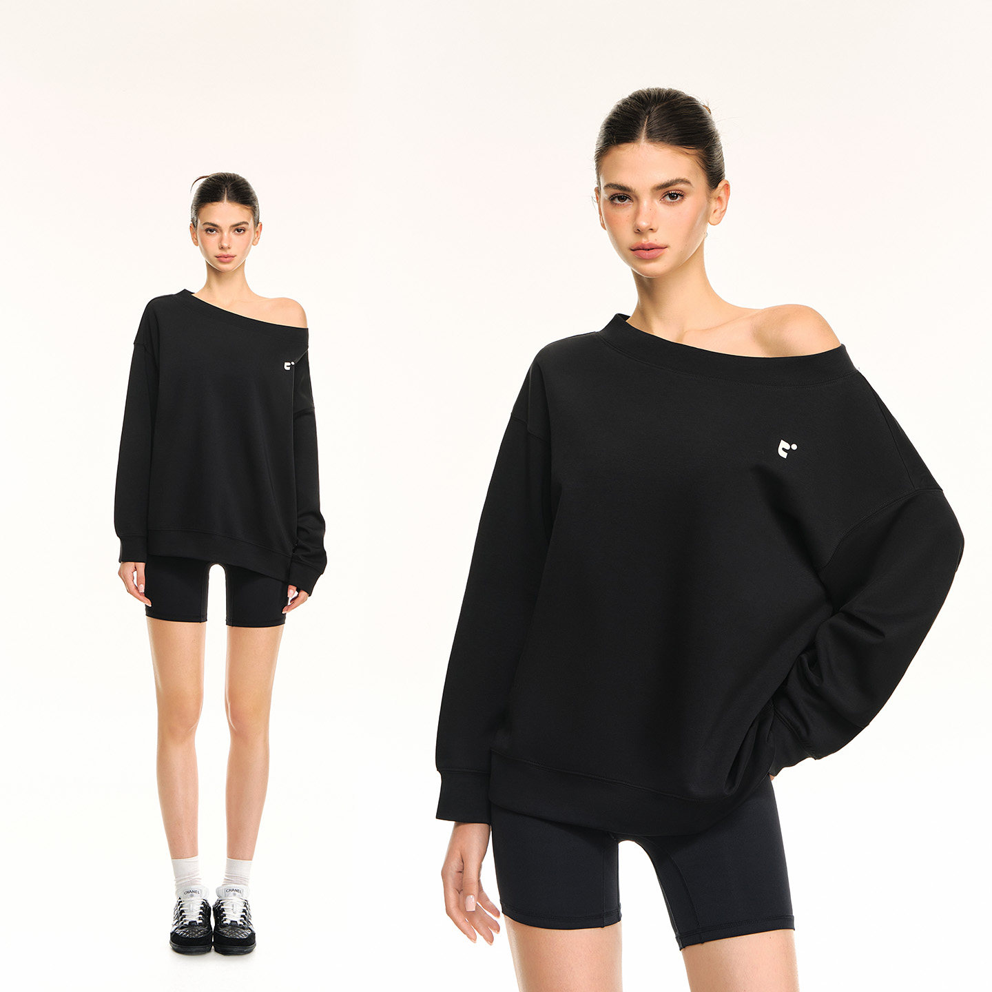 CLIMAX VISION轻薄舒适刻字膜印花廓形圆领斜肩一字肩两穿卫衣