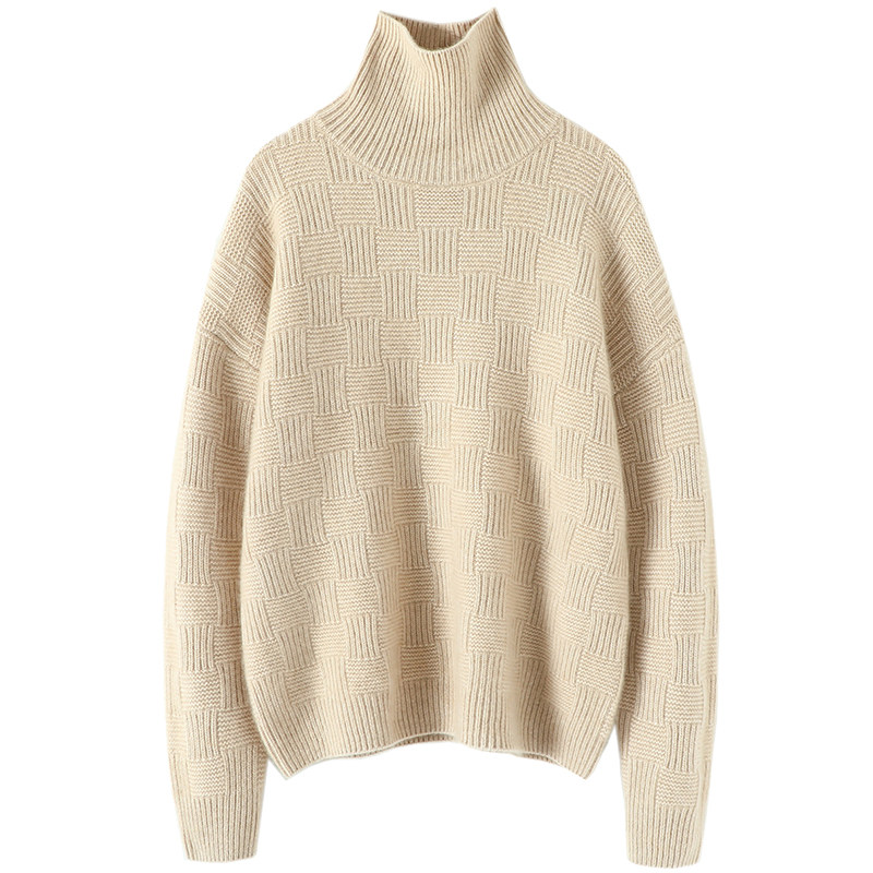 女纯羊绒毛衣冬 方格立体坑条高领羊绒衫 气质爆棚耐看 重磅加厚