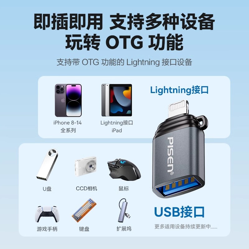 品胜适用iPhone苹果otg转接头手机连接u盘转换器数据线Type C转usb3.2充电手机ipad平板电脑车载高速传输
