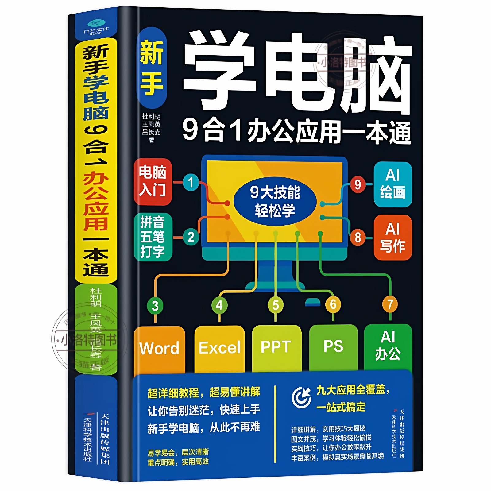 正版 零基础学电脑从入门到精通9合1文员办公初级者计算机应用电脑知识资料完全自学习手册教材书0开始新手教程拼音打字表格一本通