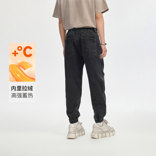 宽松抗寒休闲裤 啄木鸟男士 超厚保暖直筒长裤 冬季 子 加绒加厚牛仔裤