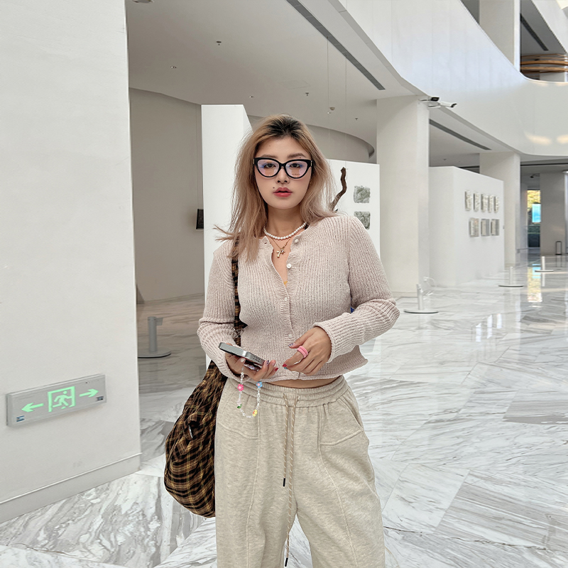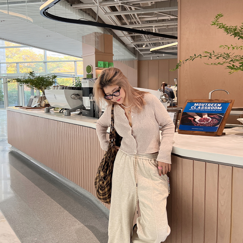长袖 LTGIRL2024秋冬大码 慵懒风休闲短款 针织开衫 外套毛衣 修身