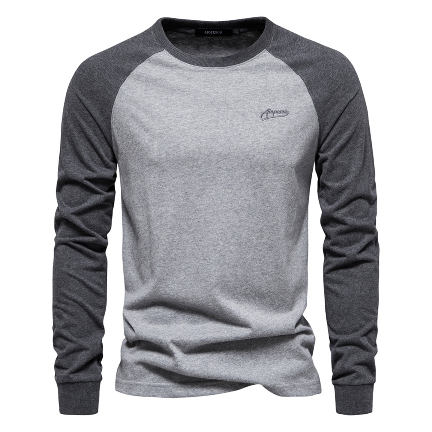 休闲圆领长袖 插肩袖 棉t恤男百搭打底上衣 shirt2026秋美式 Men