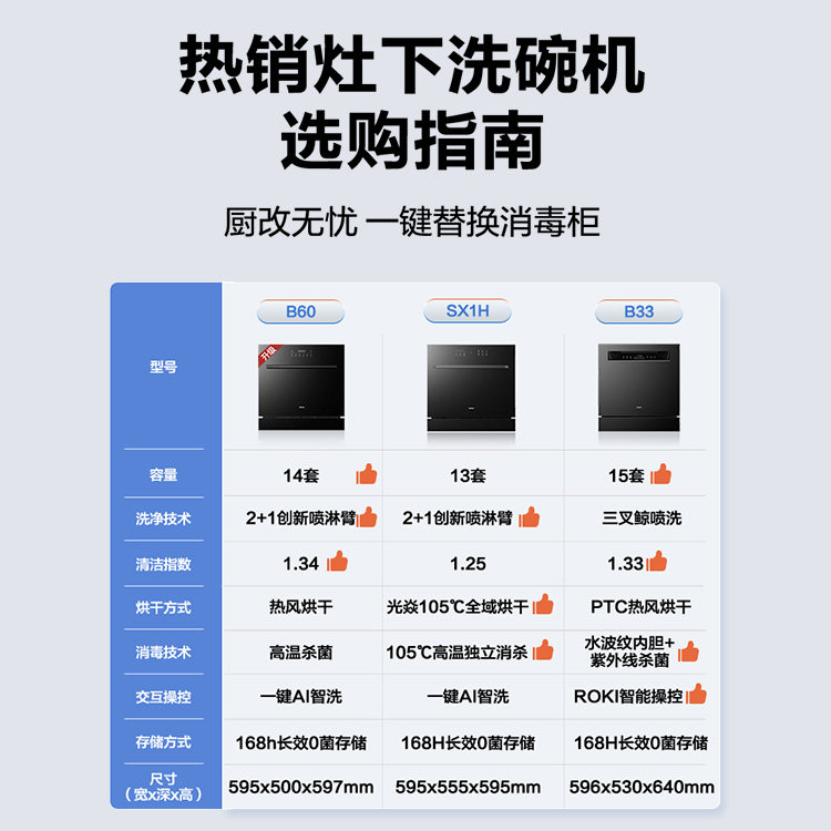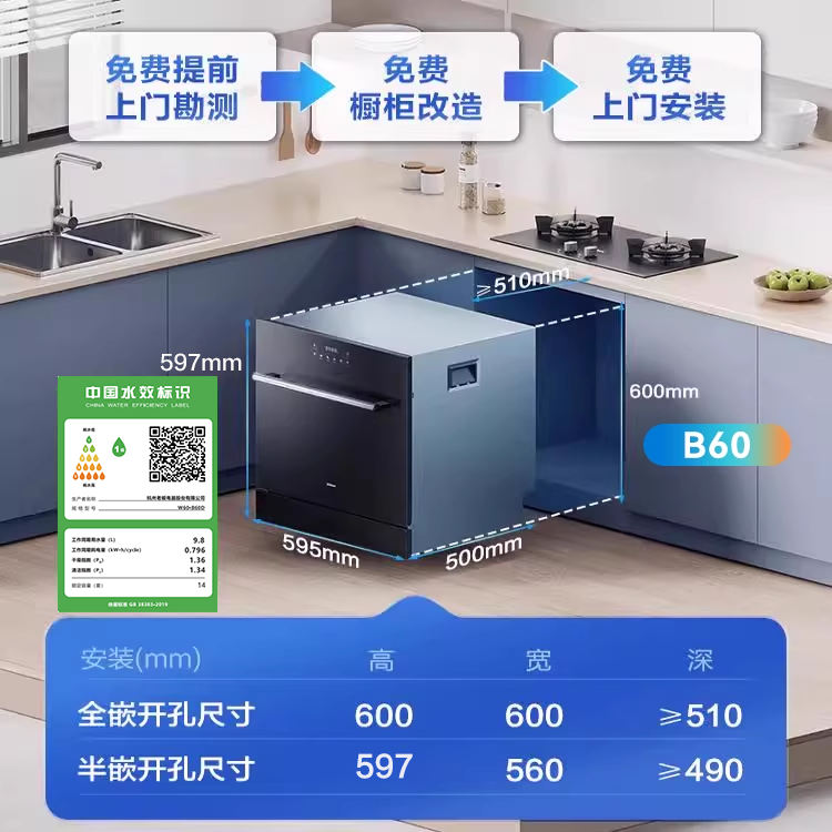 老板星辰洗碗机B01灶下嵌入式 13套全自动家用小型0菌消毒一体机