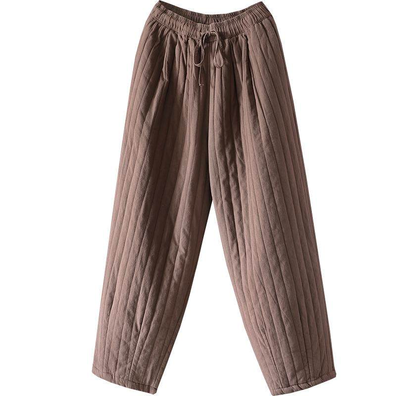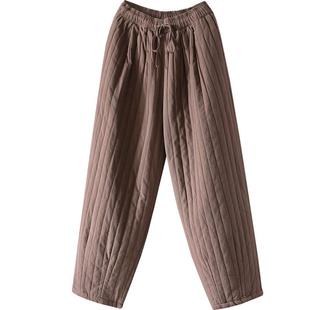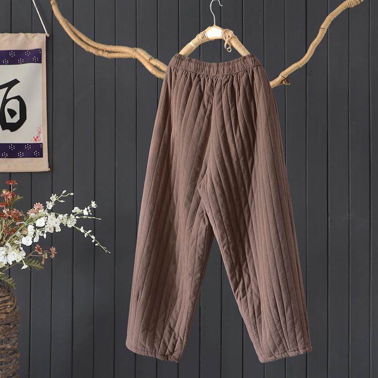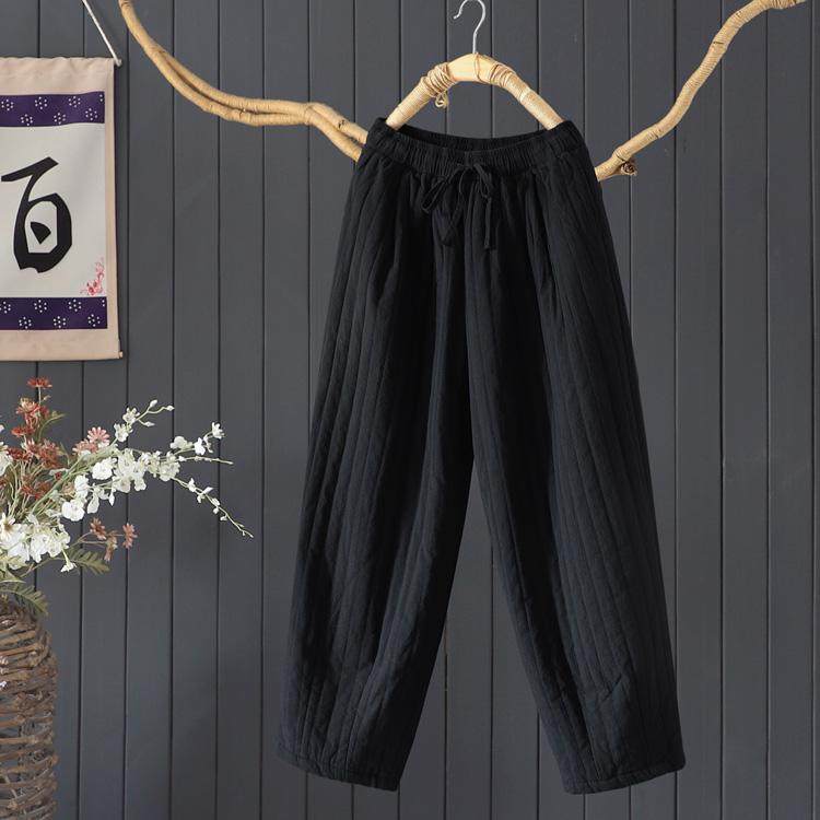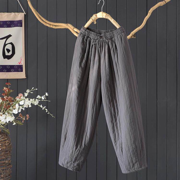 靴裤 宽松慵懒纯色绗线压线棉麻萝卜裤 保暖棉裤 冬季 女 夹棉加厚长裤