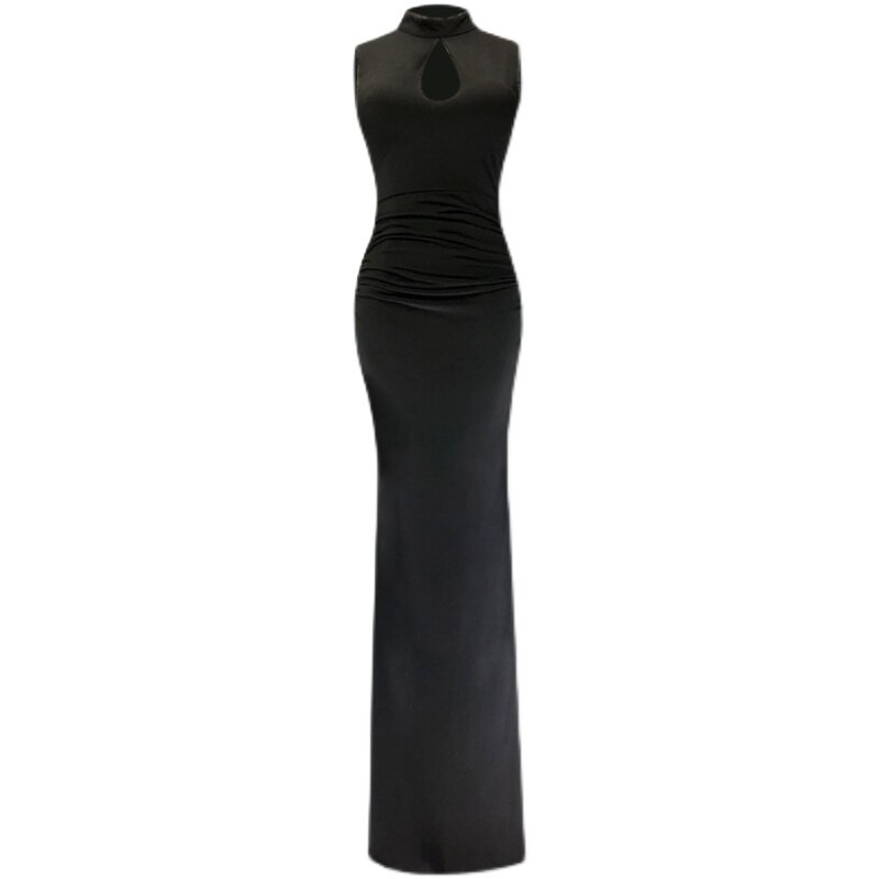 性感连衣裙修身 鱼尾长裙女黑色 显瘦紧身包臀弹力裙子名媛气质无袖