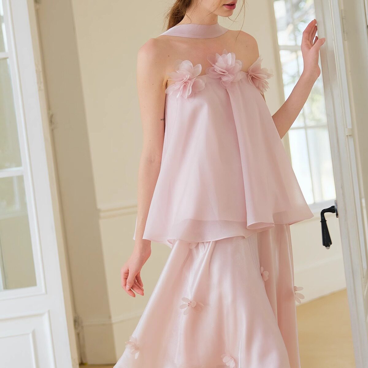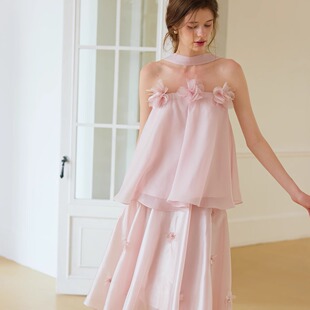 25春夏 frigidOrg 柔雾粉芍药飘带抹胸上衣纯欲仙气度假风