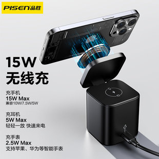品胜桌面充电站三合一无线充电器45W适用苹果17快充apple watch手表16磁吸magsafe手机iPhone耳机15w底座S11