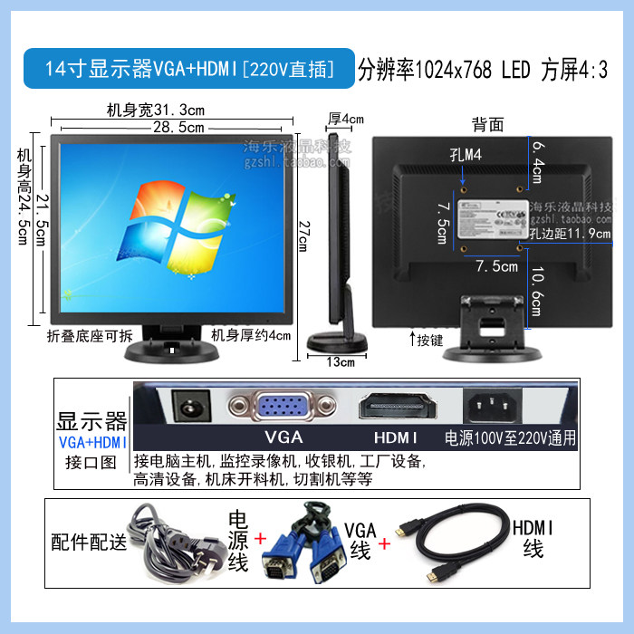 14寸15高清迷你小电脑显示器收银机屏幕外接副屏HDMI电视