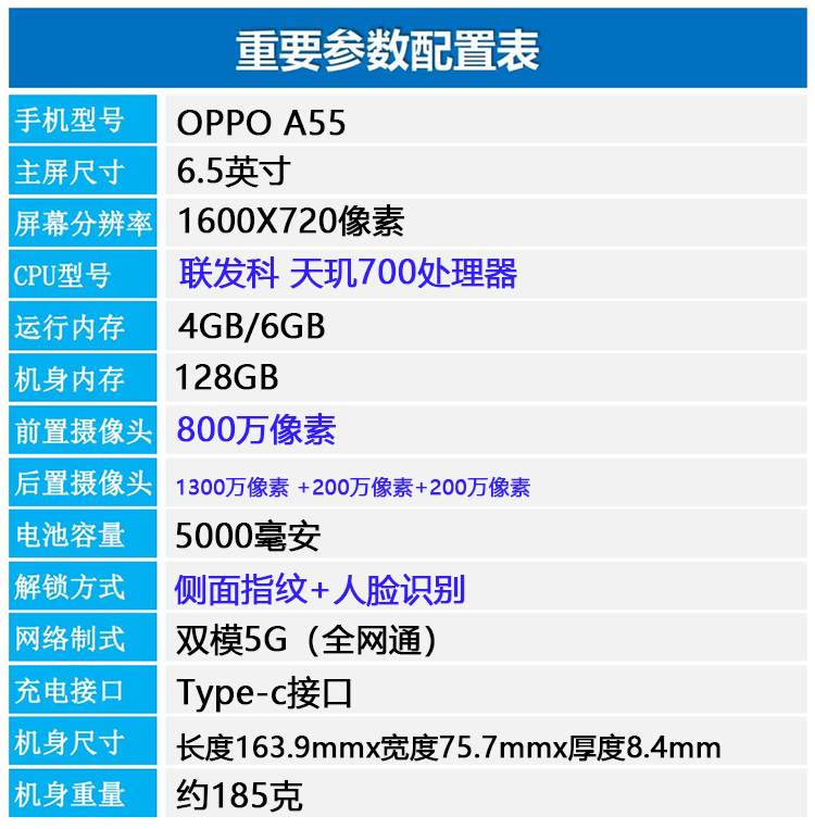 新款 OPPO 天玑700处理器 6.5英寸智能手机大屏大电池拍照 A55