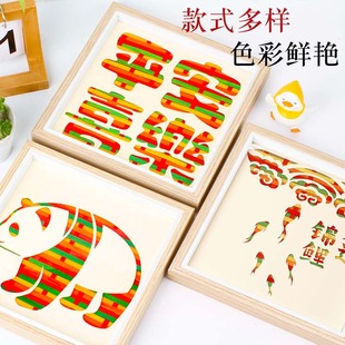 非遗竹编画手工diy材料包儿童幼儿园创意礼物元 旦节新年马年