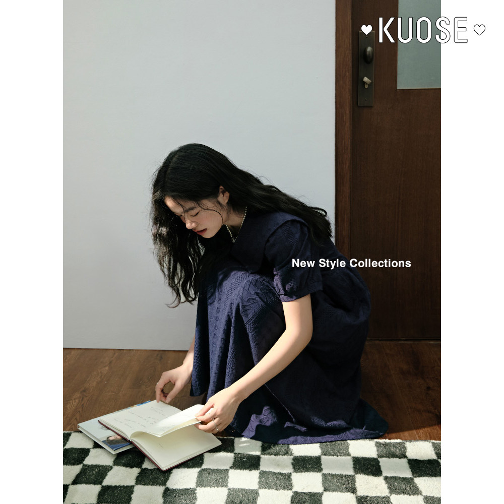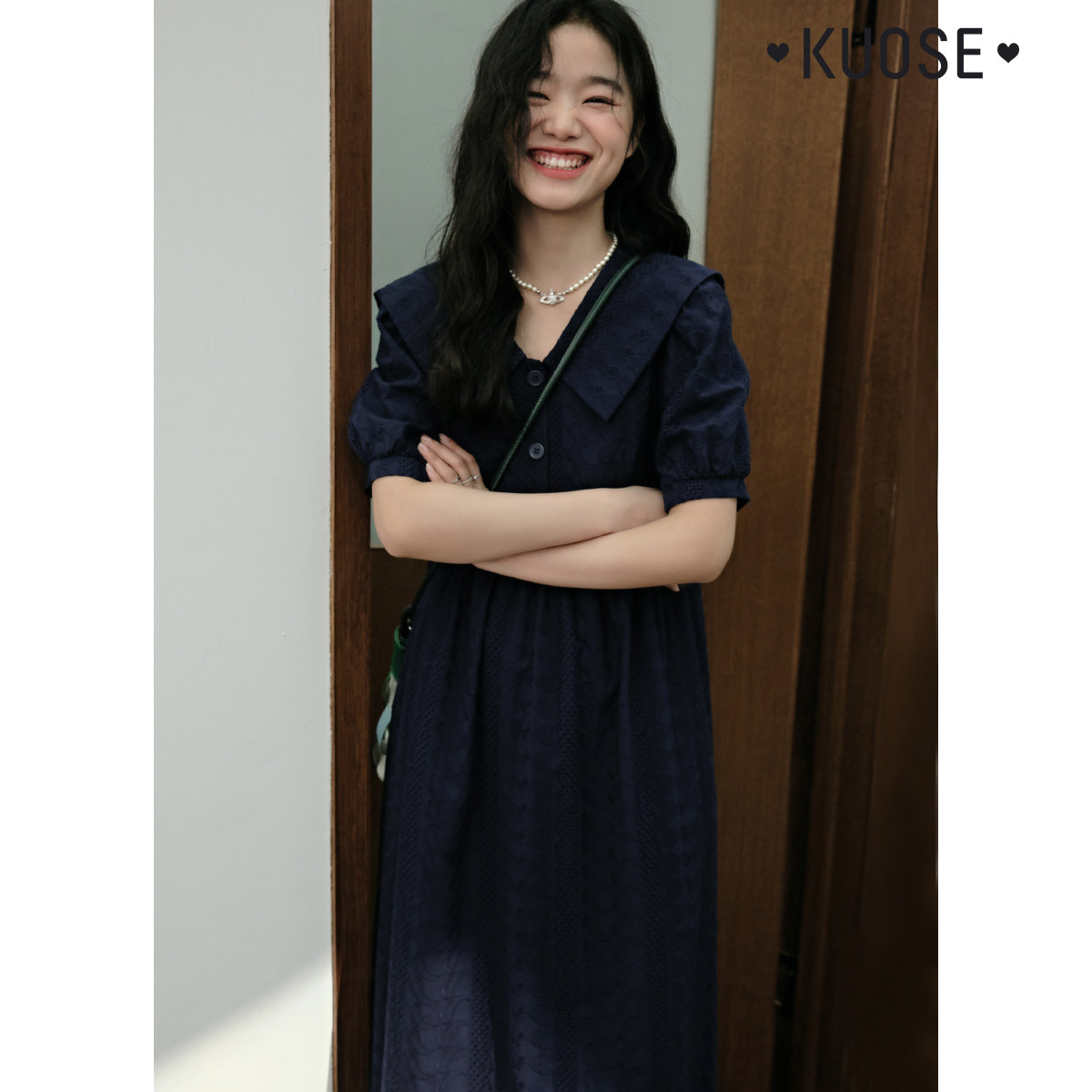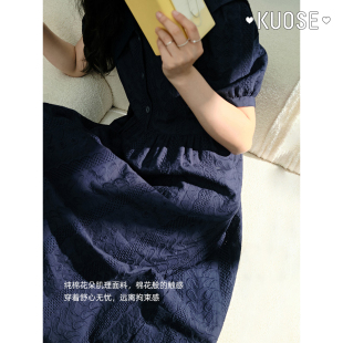 法式 阔色蓝色肌理衬衫 泡泡袖 新款 收腰显瘦长裙子 连衣裙女26春夏季