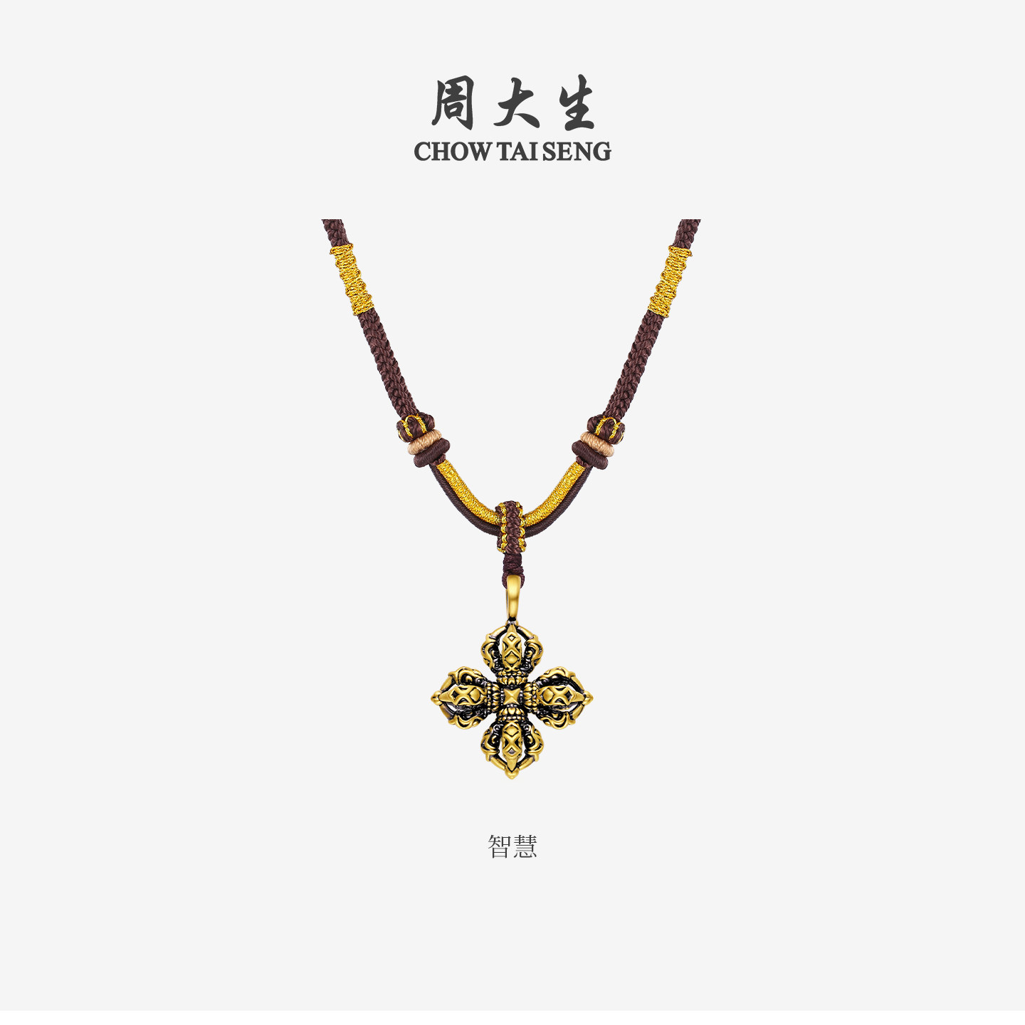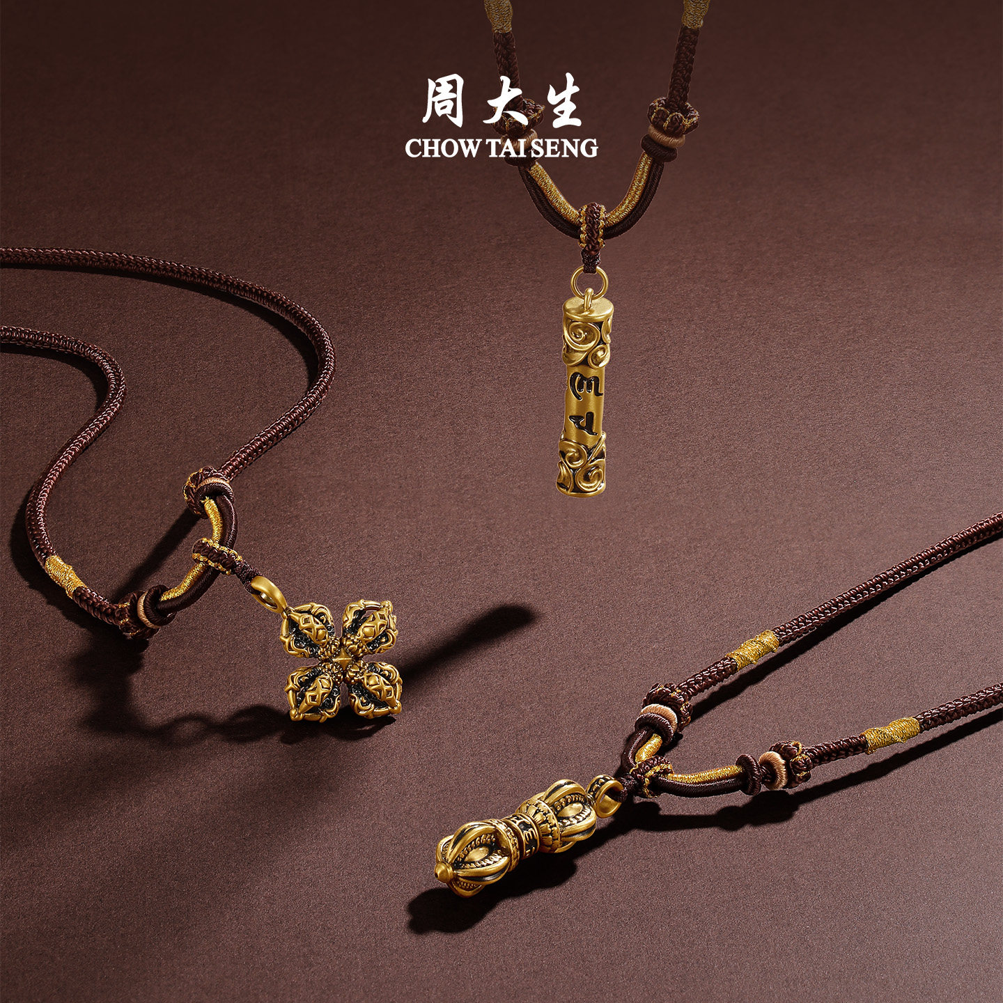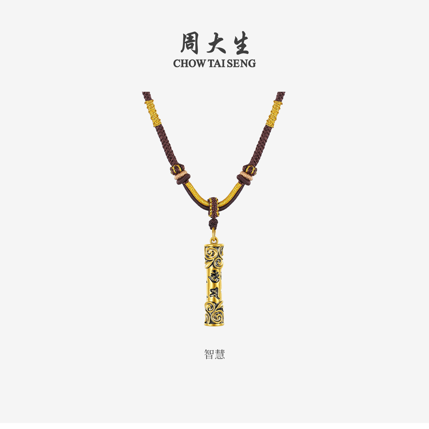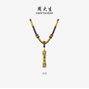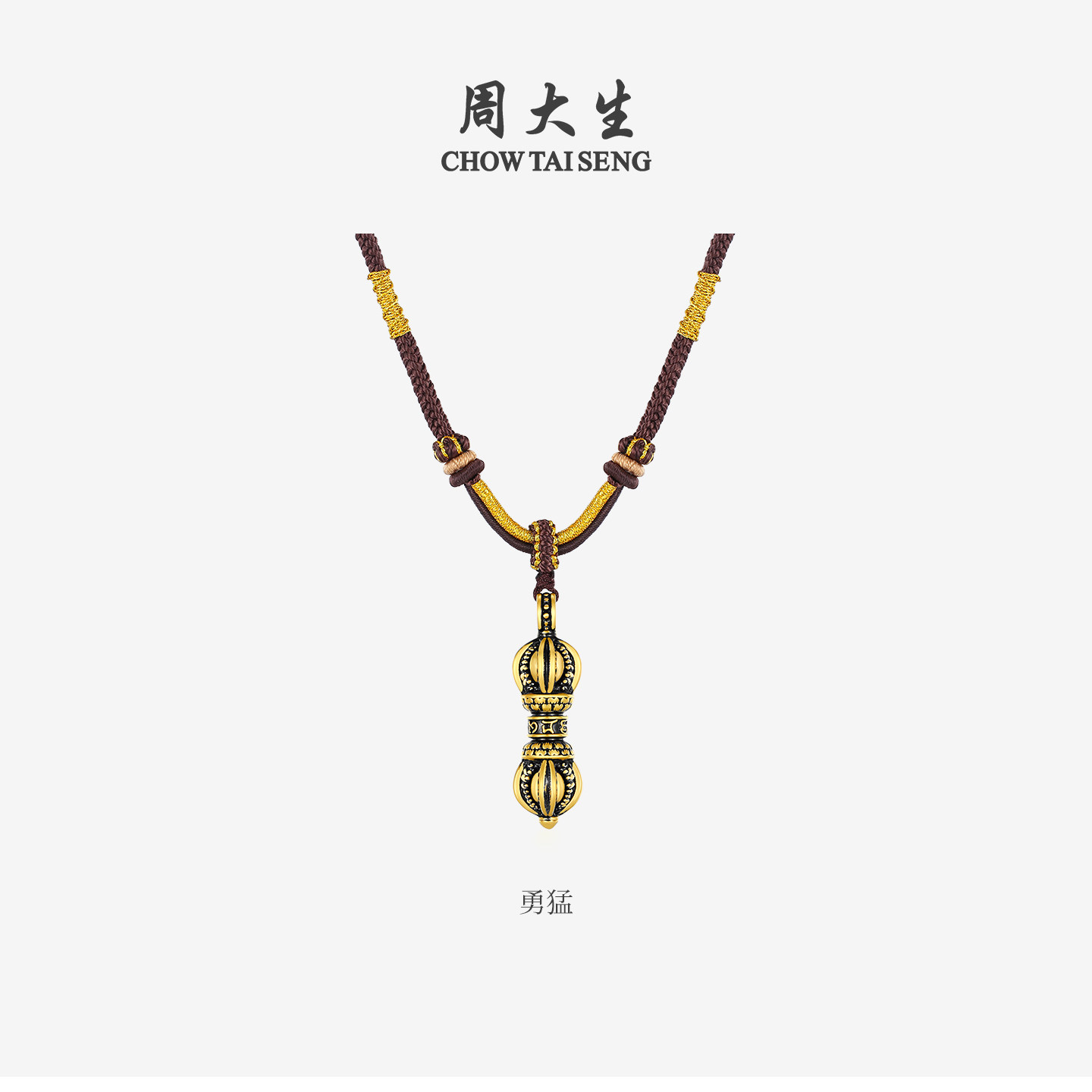 周大生黄金吊坠男足金硬金金刚杵超酷黑金情侣项链新年礼物送男生