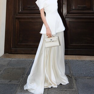 法式 设计感小众气质长裙A字长裙 缎面拖地半身裙女春夏2025新款