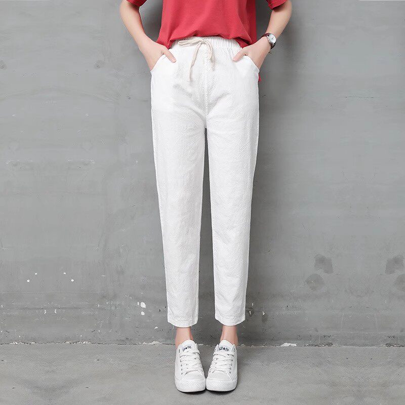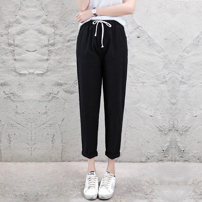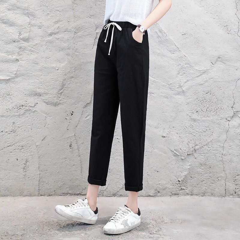 纯棉韩版 新款 裤 子宽松休闲裤 九分裤 显瘦哈伦长裤 棉麻女夏2026春季