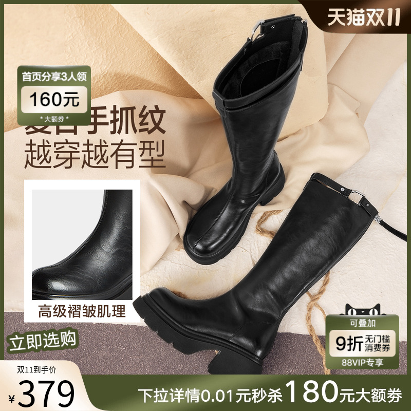 百思图2025冬季 高跟骑士靴圆头粗跟厚底女长靴F1711DG5 商场新款