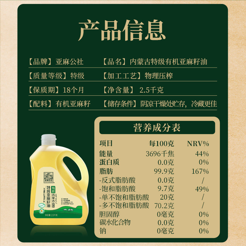 食用油 内蒙古亚麻油官方旗舰店正品 稻子熟了纯亚麻籽油 冷榨一级