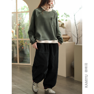 哈伦裤 咖咪羽休闲裤 哈伦灯芯绒纯色直筒加厚女装 大码 女加绒冬新款
