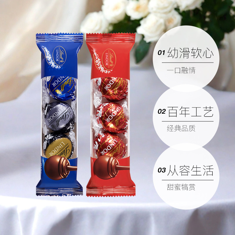 Lindt瑞士莲软心牛奶巧克力3粒随享装 直播 2零食喜糖 自营