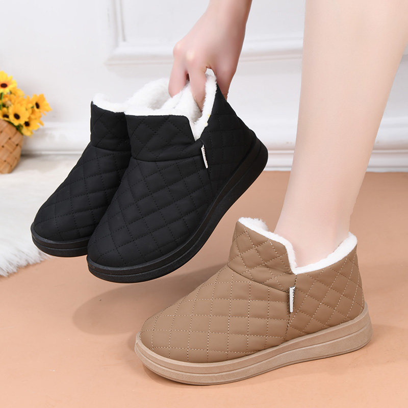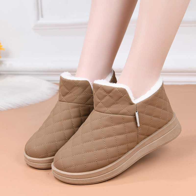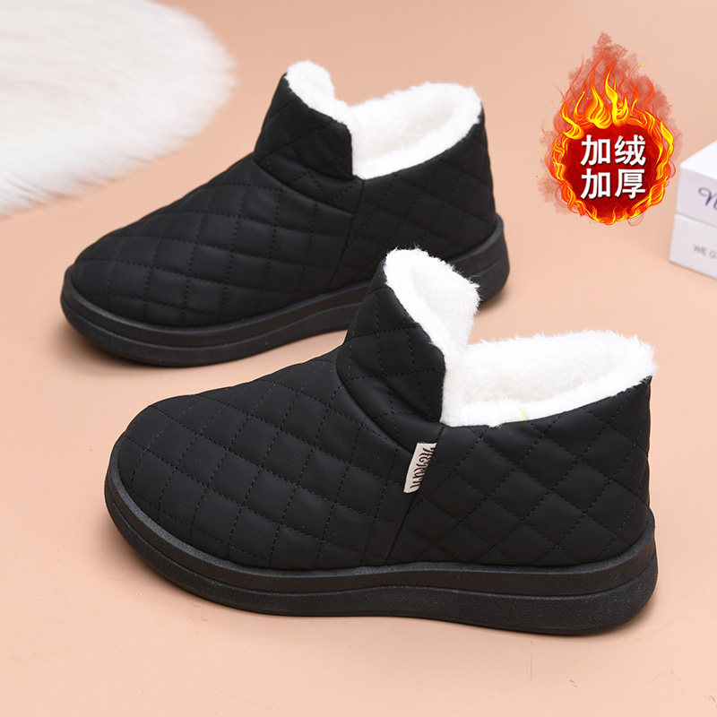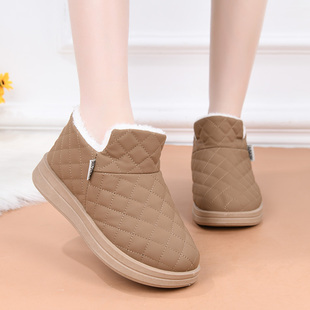 加绒加厚棉靴保暖防滑棉鞋 女鞋 防水皮面厚底雪地靴老北京布鞋 冬季