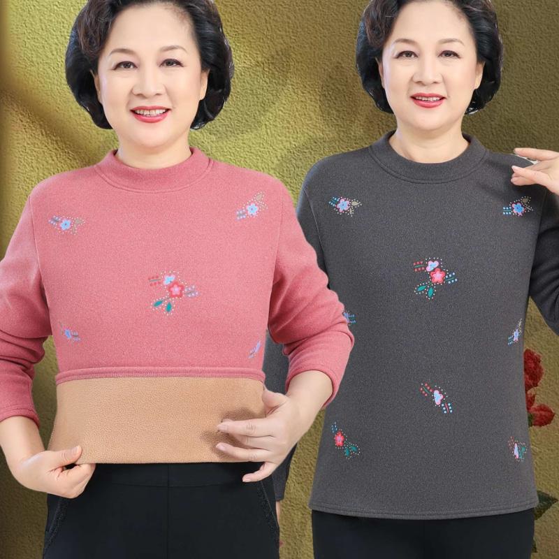 中老年人女装 秋冬新款 保暖中领T恤弹力加厚上衣 加绒打底衫 奶奶装