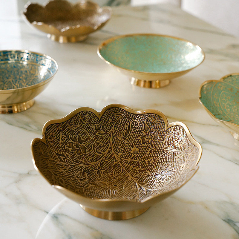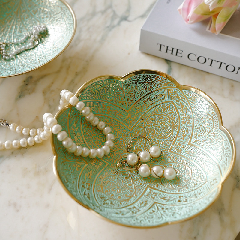 欧式 复古美式 饰摆件 黄铜装 家居首饰收纳盒 入户玄关钥匙收纳托盘
