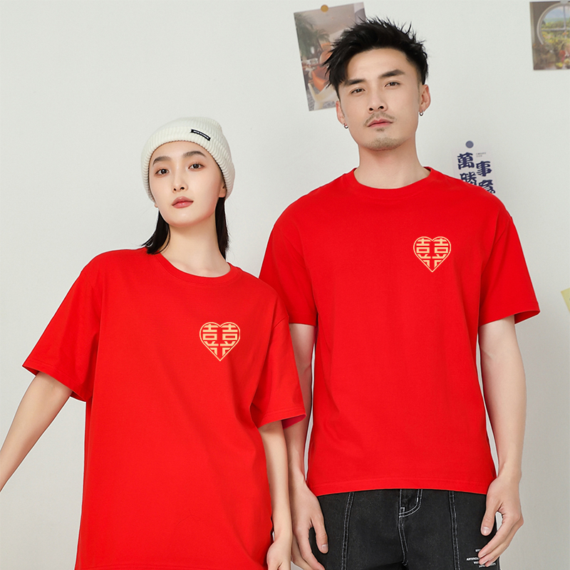 T恤红色礼服纯棉喜字结婚仪式 短袖 感衣服 穿搭夏季 领证登记情侣装