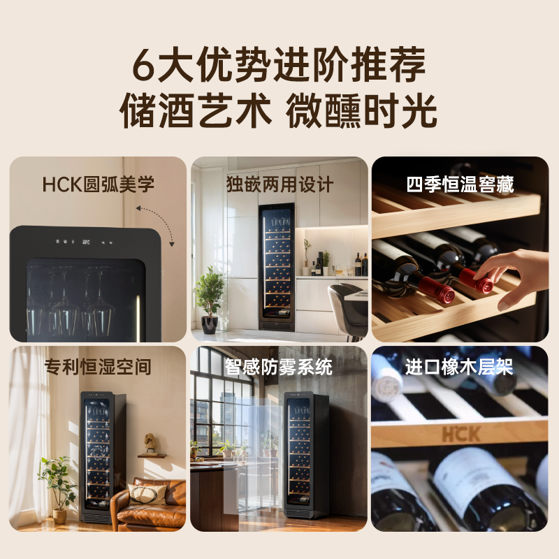 HCK哈士奇红酒柜立式 客厅办公室超薄储藏柜 恒温恒湿展示柜嵌入式