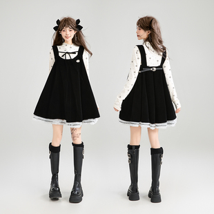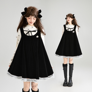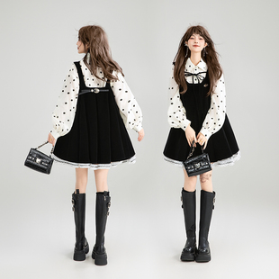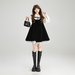 法式 千金感丝绒背带连衣裙25秋季 蓬蓬A字吊带裙 蕾丝花边 KEIKO