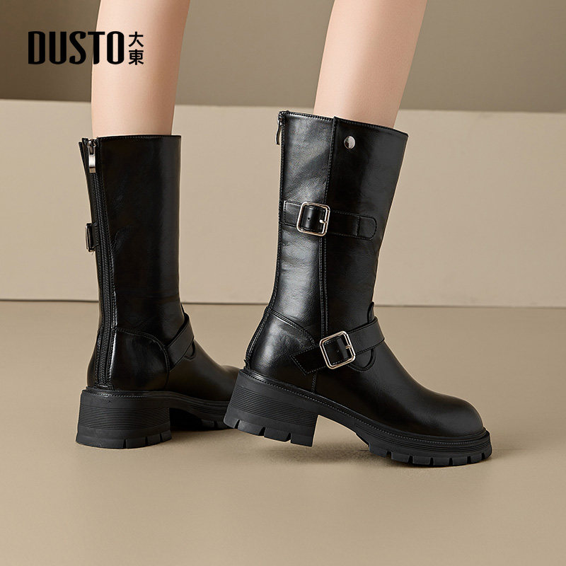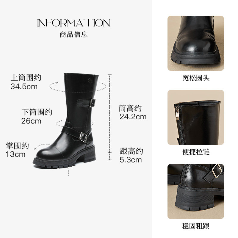 长筒靴女2025秋冬新款 中筒高筒靴早秋靴子骑士靴小个子马丁靴长靴