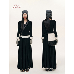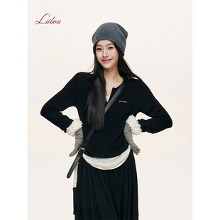 羊毛混纺 松弛感 小v领假两件打底针织上衣 Liilou 包上恩同款