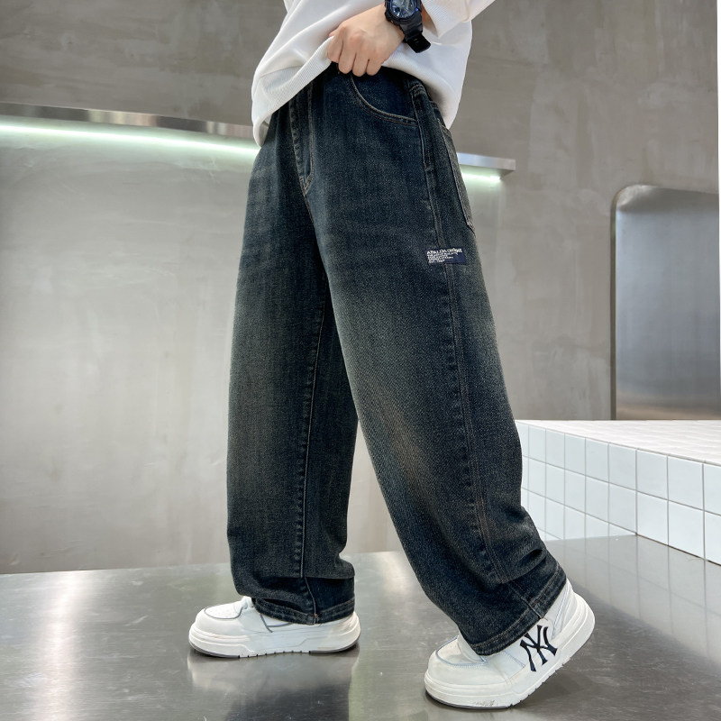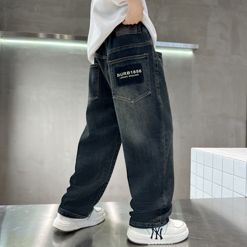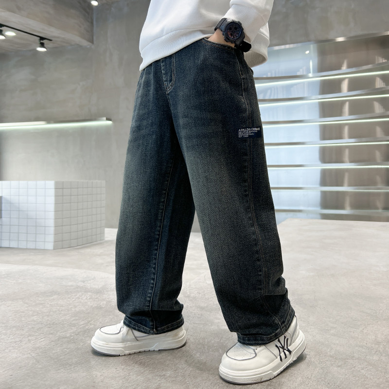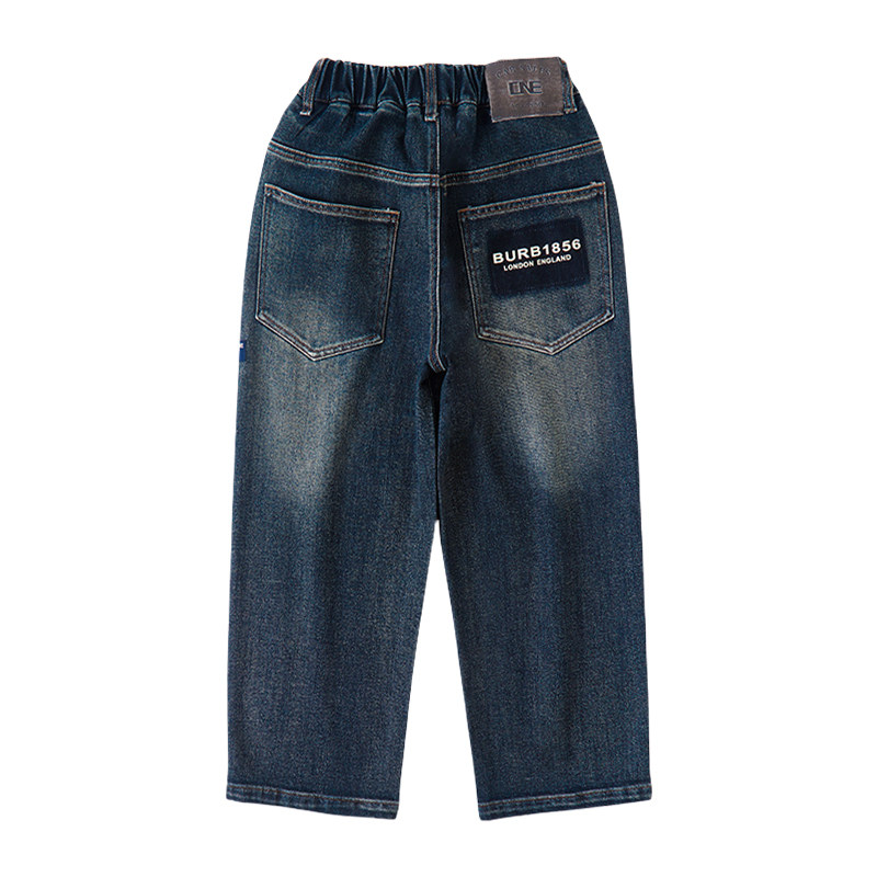 子秋冬中大童加厚长裤 男童一体绒牛仔裤 儿童加绒裤 2025新款 潮 冬装