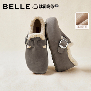 加绒雪地靴女预 冬季 周雨彤同款 百丽厚底全麦吐司2代毛毛勃肯棉鞋