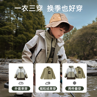 男女童户外防水抓绒上衣 新款 EBAER儿童三合一冲锋外套2025冬装 款