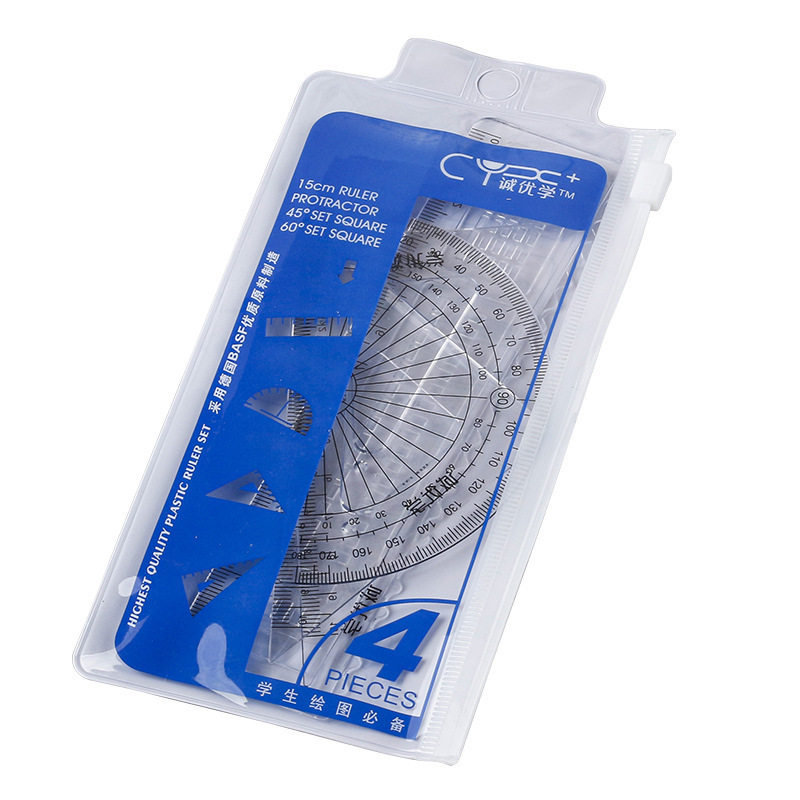 透明尺子套装 考试专用尺子四件套多功能学生直尺三角尺量角器加厚