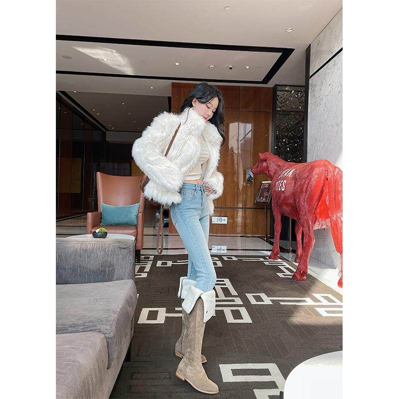九分拉腿深冬加绒白牛神裤 韩女牛仔裤 超显瘦修身 靴靴穿搭伴侣