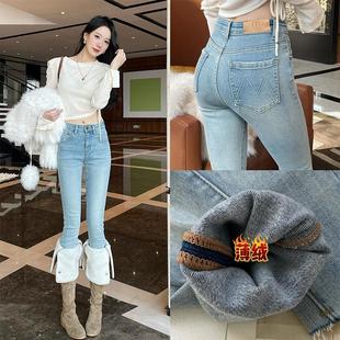 紧身显瘦弹力加绒小脚铅笔裤 修身 女秋冬2025年新款 薄绒高腰牛仔裤